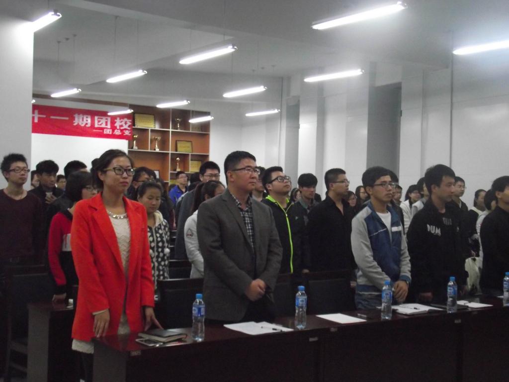 2014年10月26日晚7时,古天乐太阳集团城团总支素教部在逸夫楼F302举行第十一期团课首次讲座暨开幕式,到场嘉宾有信息工程公司党总支副书记段志峰老师,团总支龙鹤老师。