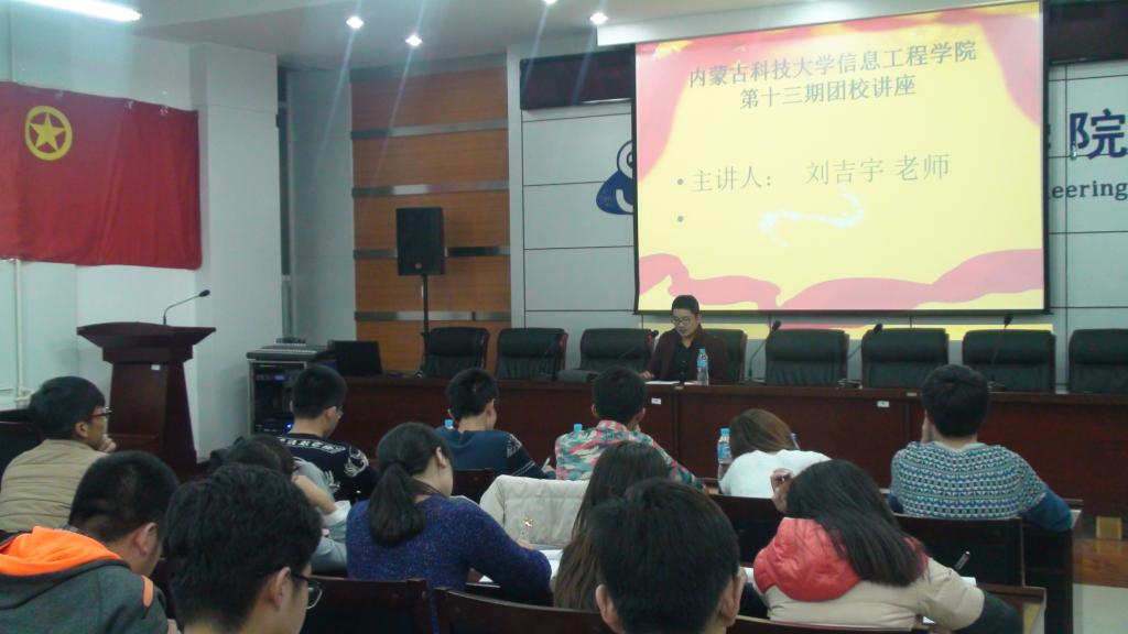 公司团总支团务部于11月6日晚7在逸夫楼F302举办了第十三期团校第四课时讲座。院学工办刘吉宇老师担任本次讲座的主讲老师