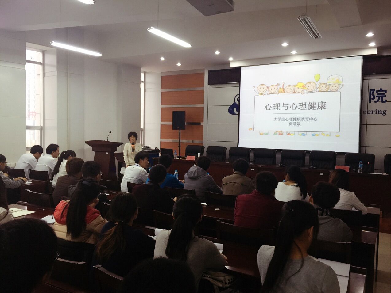 2015年11月13日上午于逸夫楼F302,公司心理辅导站邀请贾慧媛老师做专题讲座。公司心理辅导站负责人龙鹤老师及全体心理委员参加了活动。
