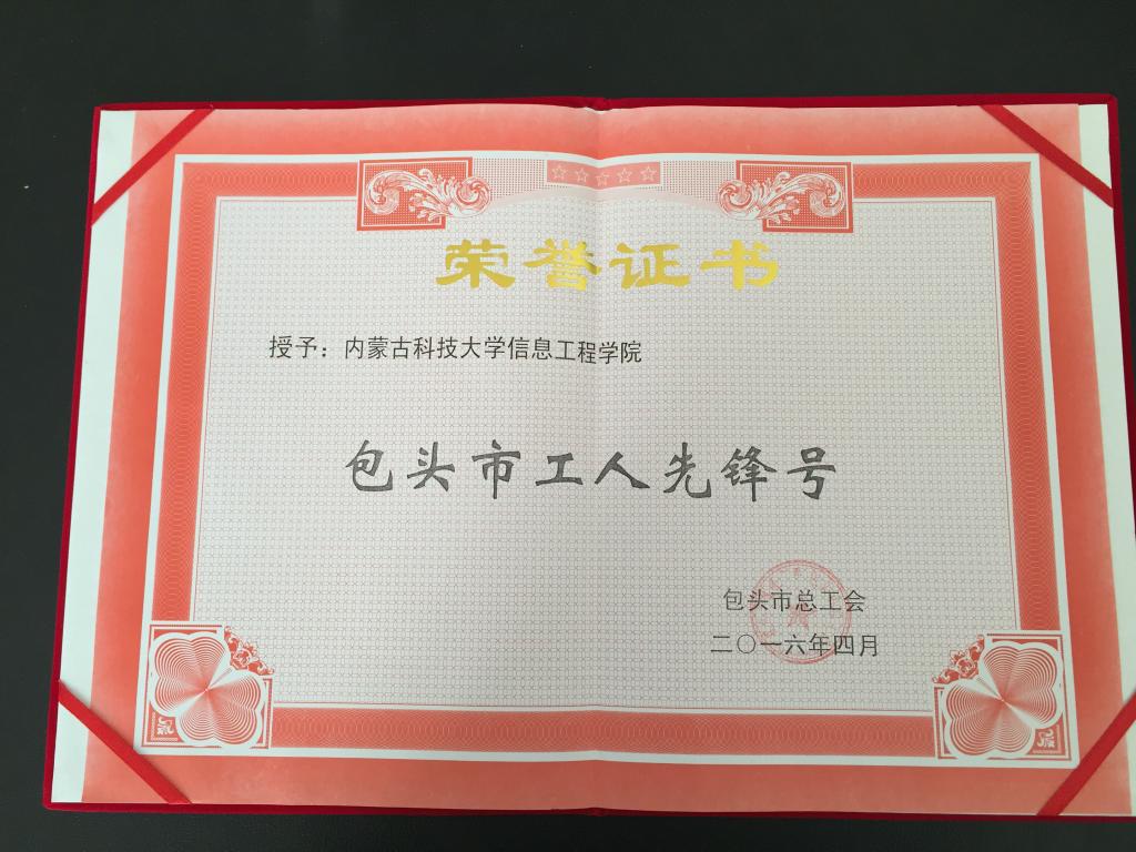 2016年4月30日上午,在包头市总工会二楼会议厅举行的庆祝“五一”国际劳动节表彰大会暨劳动竞赛启动仪式上,古天乐太阳集团城被授予“包头市工人先锋号”荣誉称号。本次会议为表彰先进,肯定成绩,激励全市各族职工在实施“十三五”规划中建功立业,包头市总工会共表彰授予20个先进单位包头市五一劳动奖状、授予70名先进个人包头市五一劳动奖章、授予60个车间班组包头市工人先锋号称号。