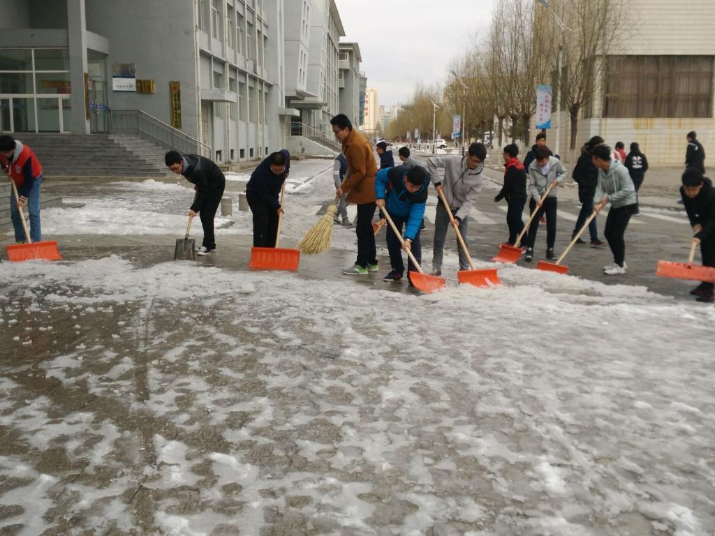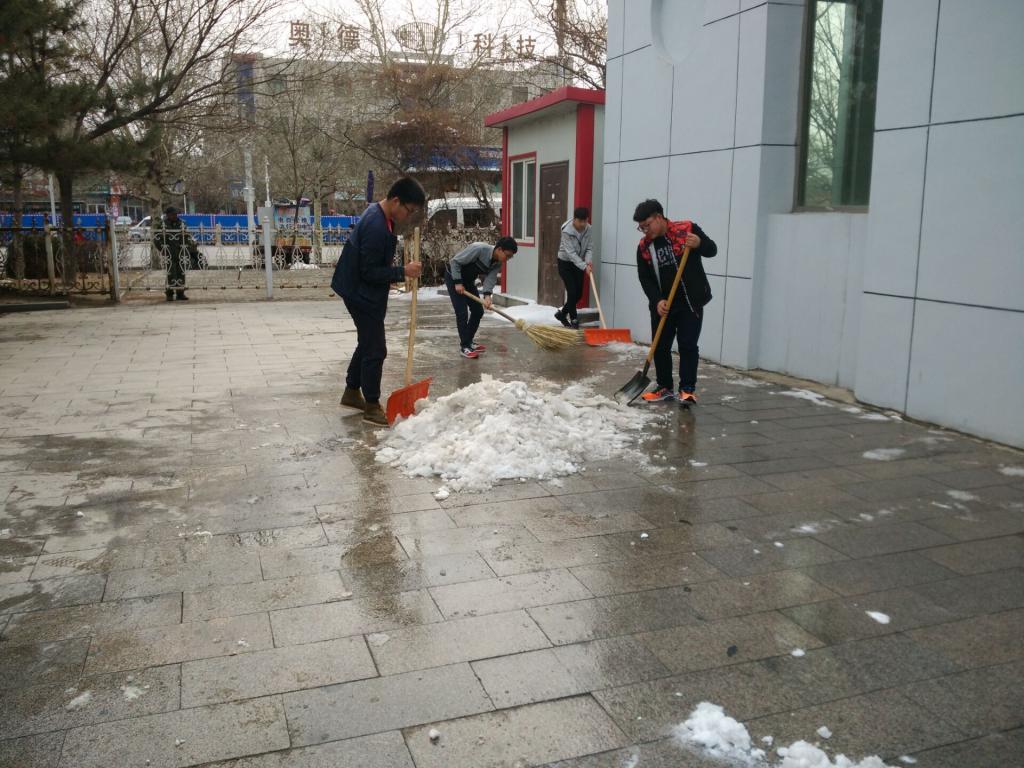 一场迎春大雪使得大地万物银装素裹,但也给师生带来了不便。为确保出行安全,3月24日至26日,公司组织了义务扫雪活动。