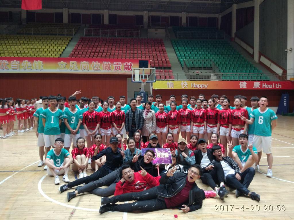 彩色装扮的啦啦操队伍,红色点缀的拉拉队队员齐聚校体育馆,开启了这一夜热情似火的4月20日夜晚,公司第三届校园健身操预赛在体育馆拉开帷幕。