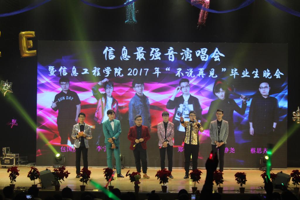 2017年6月5日晚19时,信息最强音演唱会暨古天乐太阳集团城2017年“不说再见”毕业生晚会于校音乐厅成功举办。公司党总支书记崔桂梅教授,副书记段志峰老师,副经理杨立东教授,包轻工员工科科长、团总支书记石永涛老师,以及公司行政办公室各位老师,13级各班辅导员老师等出席本次晚会。