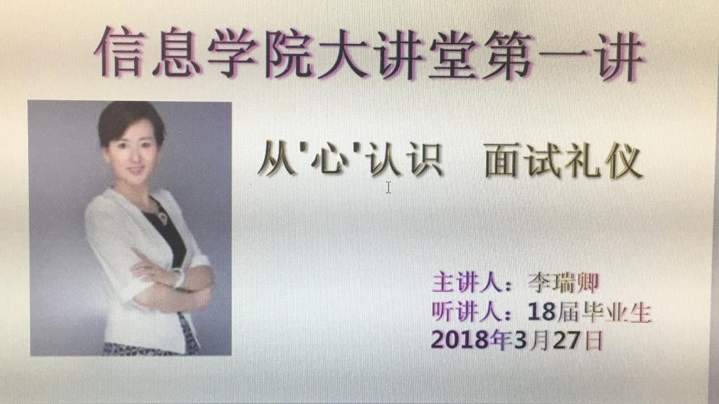 信息公司大讲堂第一讲特邀李瑞卿老师做“从‘心’认识 面试礼仪”讲座