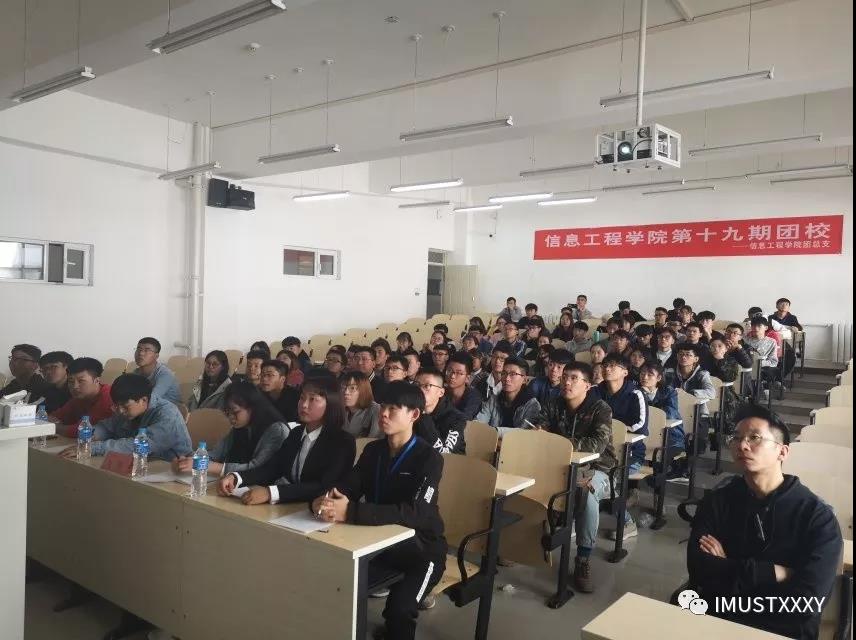 仪式结束后,刘新老师上台为我们作了团课第一讲,他首先带领大家学习了团的十八大精神,给大家观看了中国共产主义青年团第十八次代表大会的相关视频。而后又讲述了公司的共青团改革工作,要全面提升团支部活力,注重基层工作;深化班长兼任团支部副书记制度;以员工会、研究会为主体组织;推行“第二课堂成绩单”,提高同学们的综合能力。最后,本次团课在热烈的掌声中圆满结束。