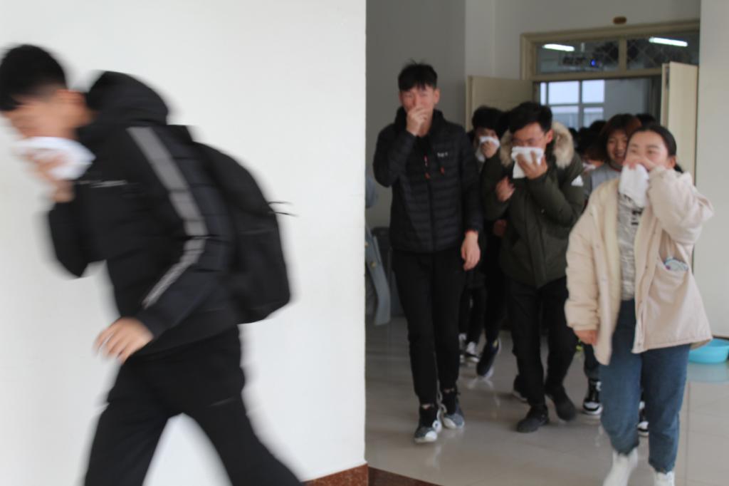 在讲座后的30分钟左右,同学们在专业消防人员的带领下进行了防火的逃生演练。为了实施好这次演练,公司制定了详细的消防疏散演练方案,并给参加演练的每位同学发了湿毛巾等防火用具,随着铃声响起,同学们在老师和消防讲员的指引下,捂住口鼻,弯着身体快速有序地按照既定的逃生路线撤离到公司操场和逸夫楼旁边空地。同学们安全撤离到安全位置后,每个班迅速检查人数,确保每一名员工都已安全撤离。