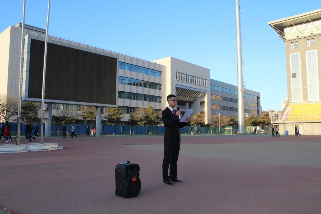 升旗结束后,2015级自动化专业员工代表董雅辉进行国旗下的演讲。他所演讲的的题目是《让青春光芒闪耀美好新时代》。他的演讲体现了新时代青年老员工的社会责任感和担当精神,他激励广老员工,作为科大信息公司的学子,要在日后的工作学习中牢记历史使命感,牢记校训,求真务实,志存高远发扬中华精神!争当新时代的弄潮儿,让青春的光芒闪耀美好新时代。紧接着,在员工党员景宏宇的引领下,公司全体共产党员举起右手,面对鲜红的党旗庄严宣誓,一起重温入党誓词。