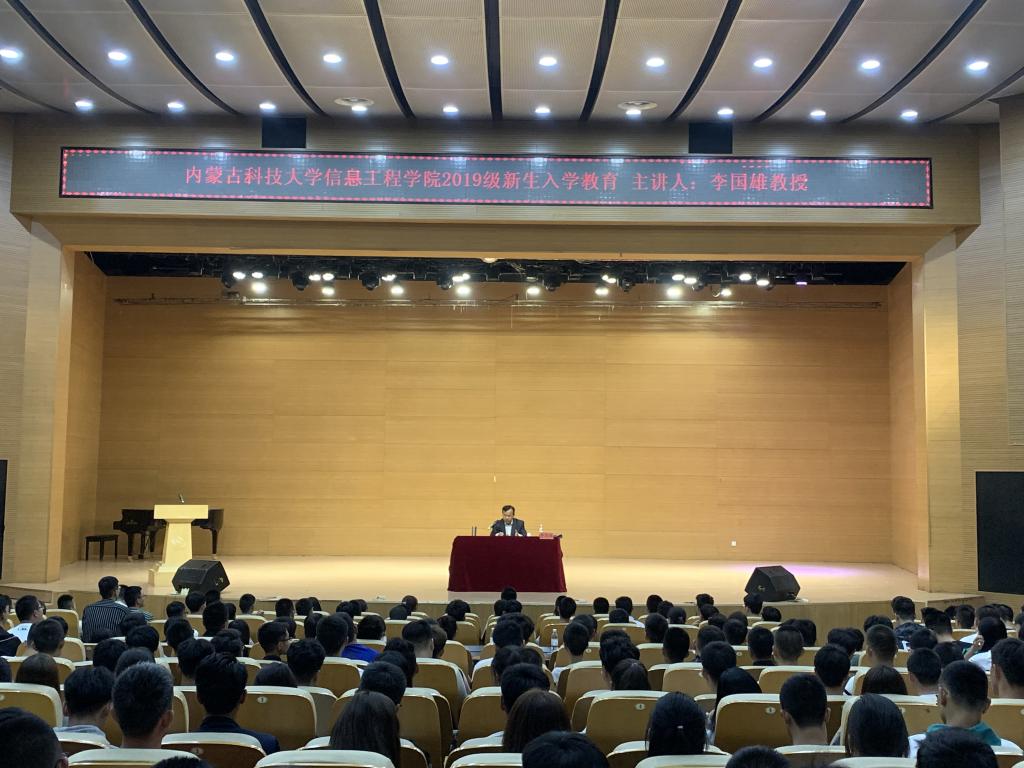 2019年9月1号上午9时,古天乐太阳集团城在音乐报告厅举行2019级新生入学专题教育,邀请公司李国雄教授作题为《树立目标明确方向尽快适应走向成功》的专题讲座。讲座由公司副书记、副经理段志峰主持,学团办辅导员、大一新生班主任以及2019级全体新生参加讲座。