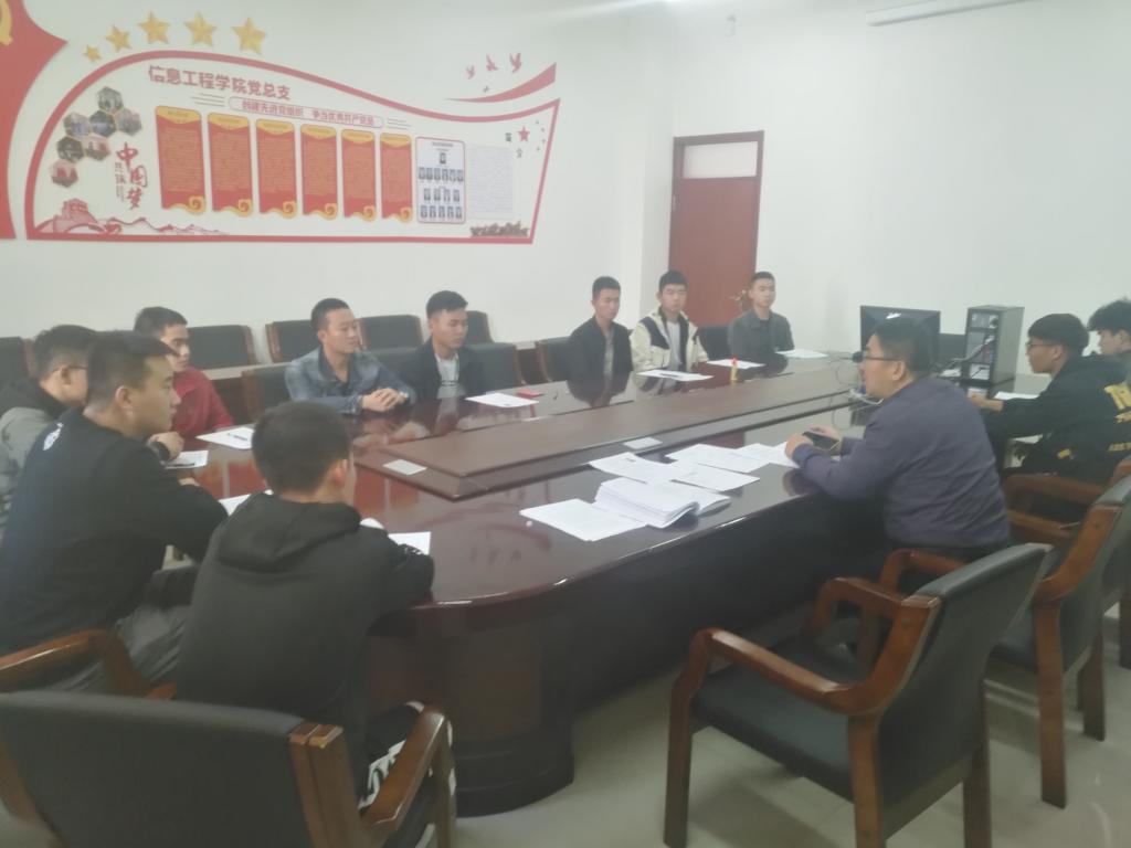 2019年11月7日12时,古天乐太阳集团城召开2019级古天乐太阳集团城退伍复学员工的座谈会。公司副书记、副经理段志峰出席会议,学工办潘高飞老师和13名退伍复学的同学参加了会议。