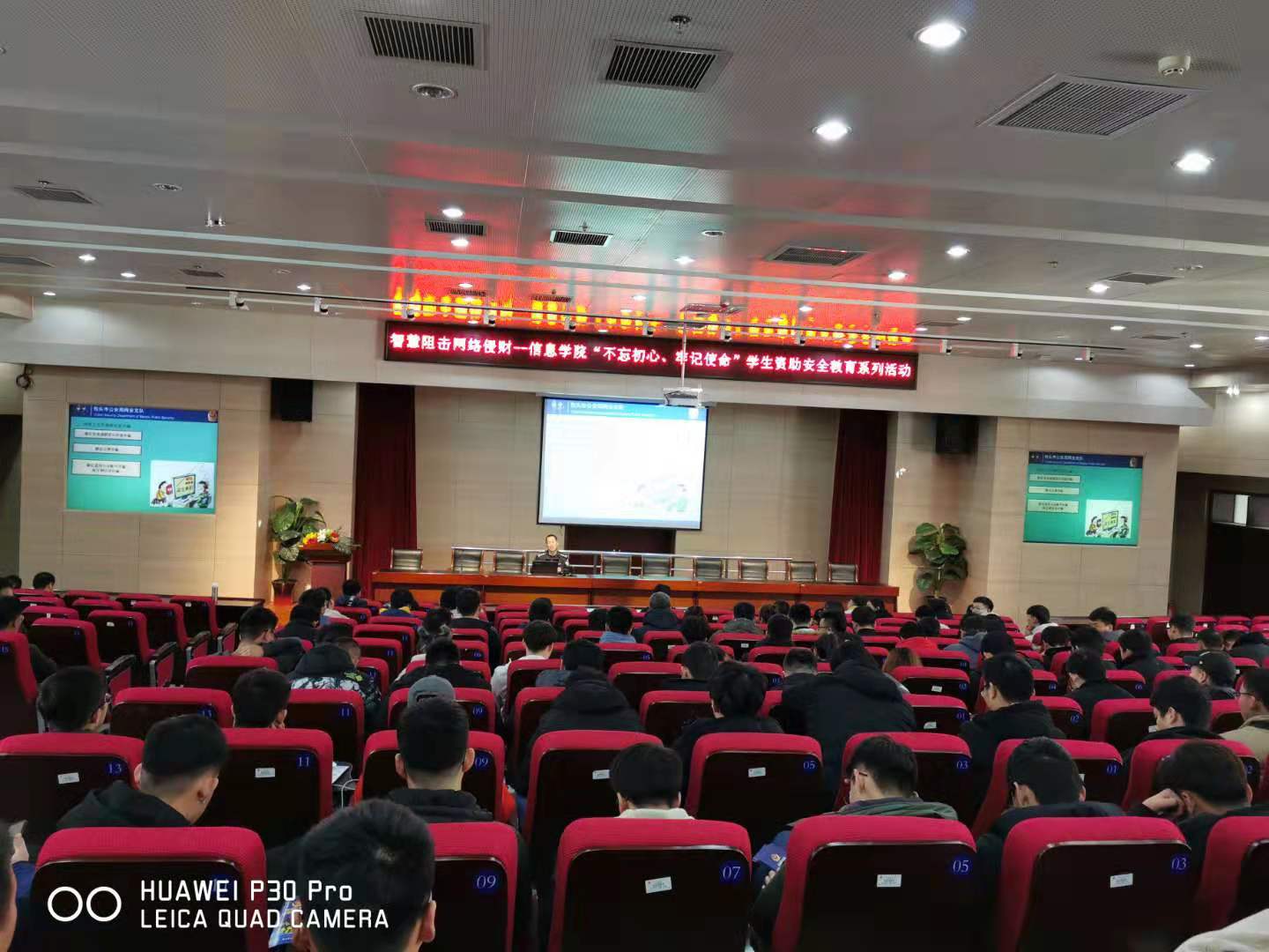 讲座过程中,同学们认真聆听,随行民警还为师生们发放了预防网络电信诈骗安全教育宣传册。讲座结束时会场响起热烈的掌声。通过聆听学习刘警官的讲座,加深了同学们对电信网络诈骗犯罪手法的认知,提高了大家甄别和防范电信网络诈骗的能力,筑牢了同学们心中的安全防线。