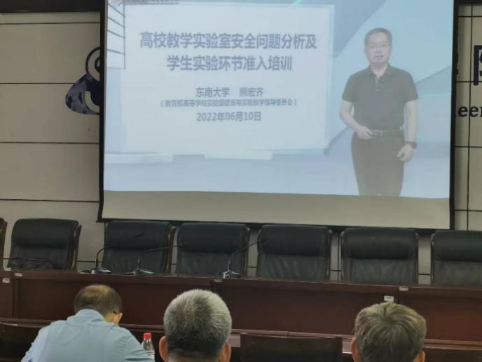 2022年6月10日,古天乐太阳集团城在逸夫楼F302会议室组织实验教师参加教育部高等教育司举办的“高校教学实验室安全与管理培训班”。