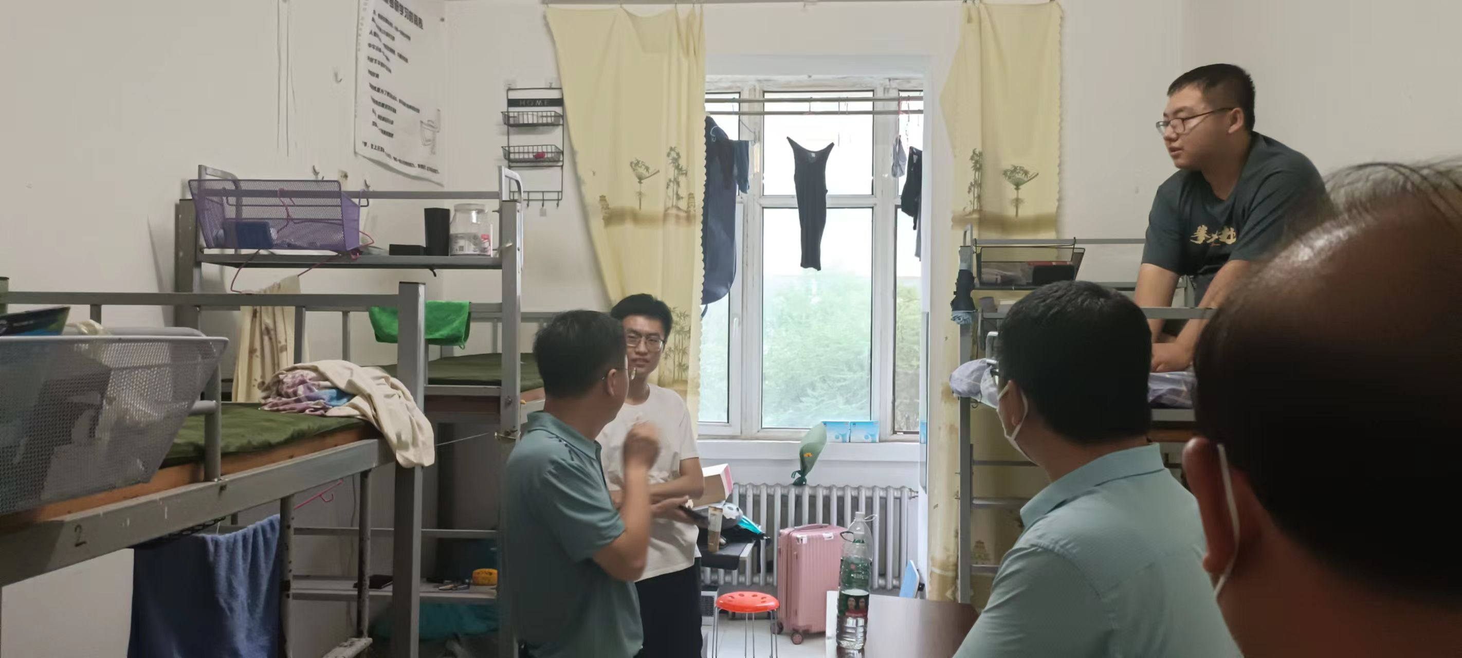 6月27日晚7点,公司党委书记段志峰,经理王静宇,副书记、副经理杨立东,副经理喻大华及相关辅导员、班主任深入到员工寝室,走访慰问返校员工,实地了解同学们返校后思想、生活和毕业事务办理状况,聆听毕业生心声。