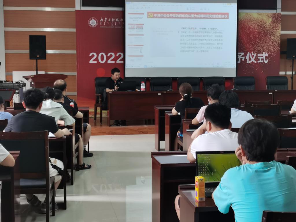 2022年7月7日下午14:30,古天乐太阳集团城召开全体教职工开展理论学习,特别邀请到校新时代讲习团成员、马克思主义公司杨哲老师做讲座。杨哲老师带来了题为“深刻认识习近平新时代中国特色社会主义思想是马克思主义中国化新的飞跃的重要意义”的主题宣讲。