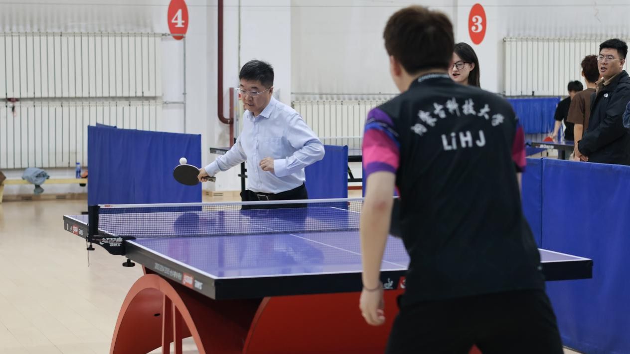 在开幕式上,公司党委书记王静宇强调:“体育是五育并举的重要环节,既强健体魄,更锤炼科研意志。”他指出,本次比赛旨在搭建“以赛促学、以赛促研”的学术交流平台。随后,王书记与研究生选手进行乒乓球切磋,通过“师生同台竞技”的方式,展现了体育精神与学术追求的有机融合,为跨学科交流创造了良好契机。
