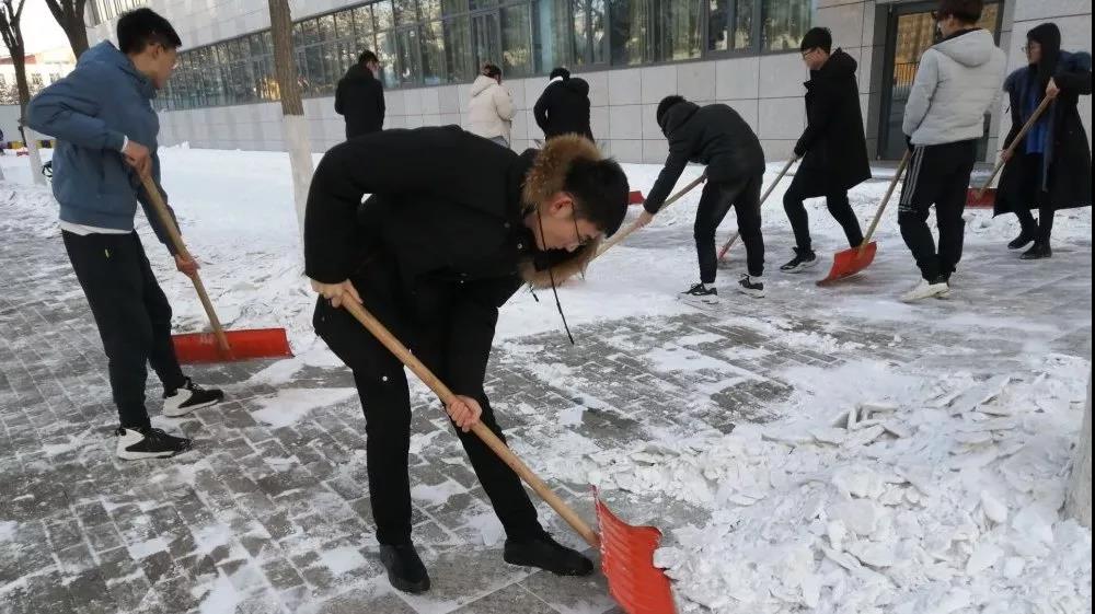 面对厚厚的积雪,我支部成员充分发扬了“不怕脏、不怕累”的精神,尽管天气寒冷刺骨,但是他们一刻也没有停歇。经过一个多小时的奋战,扫雪工作终于圆满完成。尽管室外温度很低,但团结的力量让所有同学内心变得格外温暖!