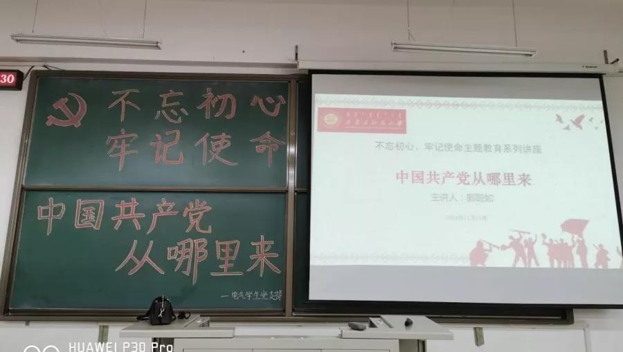 最后郭老师又带大家回到了最初的问题,中国共产党从哪来?每个同学心中都找到了答案:中国共产党从救亡图存、实现民族复兴的历史使命中来,从青年知识分子的坚守与探索中来,从实事求是,不断自我革新中来,从心系人民、服务群众中来。郭老师讲述的党课极大的振奋了支部成员的爱国热情,使支部成员深刻了解到了我党顽强的生命力与为中国人民谋幸福为中华民族谋复兴的初心。在困难中我们不曾放弃,在发展中我们不忘初心,坚守最初的使命。我们要积极向党组织靠拢,刻苦学习,用真才实学服务人民,用创新创造服务国家,为祖国的建设贡献出自己应有的力量。