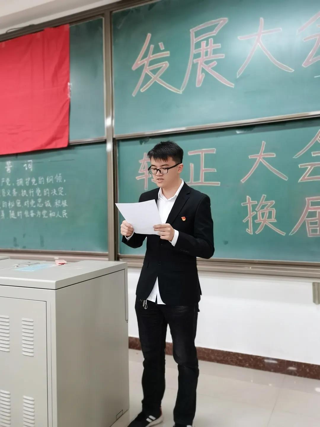 由纪检委员赵凤杰同志宣读支部大会关于接纳吕美云等9位同学成为预备党员的决议书。大会最后,由支部书记刘吉宇同志进行总结,刘吉宇同志说到,希望大家以党员标准严格要求自己,并去对身边其他人产生影响,希望新发展党员也能够努力严格要求自己,让同学们向自己看齐。同时,希望我们无论处于何种状态,都能敢于行动去成就自己,希望大家每个人的人生都是由自己奋斗出来的,而不是随波逐流的。