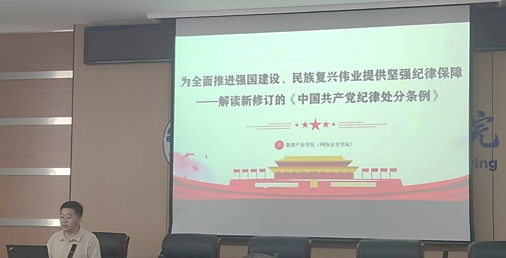 王静宇书记从《条例》修订的历史沿革、重要意义和主要内容三方面解读了《中国共产党纪律处分条例》,并结合日常工作实际强调,在全党开展党纪学习教育,是加强党的纪律建设、推动全面从严治党向纵深发展的重要举措,也是推动公司、公司事业高质量发展的现实要求。我们要持续推动党纪学习教育走深走实,进一步教育引导全公司党员、干部真正把纪律规矩转化为政治自觉、思想自觉、行动自觉。要深刻把握党纪要求,自觉把自己摆进去、把职责摆进去、把工作摆进去,结合高校特点、联系本职工作,同做好公司中心工作紧密结合起来,为公司发展提供坚强纪律保障和强大精神动力。