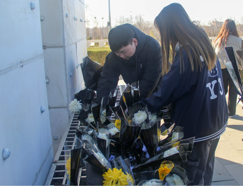 国旗护卫队向革命先烈敬献花圈,寄托无尽追思。全体师生有序敬献鲜花、绕行瞻仰烈士纪念碑。每一束鲜花都承载着对先烈的崇高敬意,大家在心底许下传承遗志、为中华民族伟大复兴奋斗的誓言。