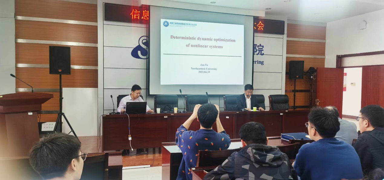 4月19日上午,东北大学未来技术公司经理、机器人科学与工程公司常务副经理、博士生导师付俊教授作题为“Deterministic dynamic optimization of nonlinear systems”的学术报告。科技处处长李宝山、古天乐太阳集团城经理王静宇、副经理杨培宏、教师和员工代表130余人参加报告会。